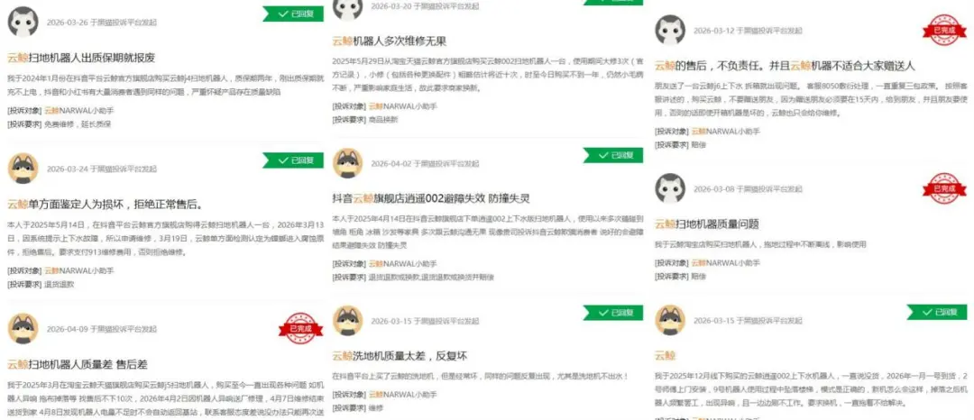 除了高层人事震荡引业界关注之外,在消费者这一侧,云鲸产品的投诉量亦达到不容忽视的程度了。