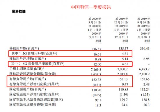 此外,“螳螂财经”想提醒,中国电信一季度有两个关键性的数据比较令堪忧,一个是5G用户增长数,另外一个是有限宽带用户增长数。