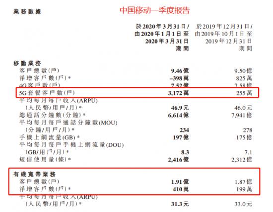 ——图片来源:中国移动2020年一季度财务报告