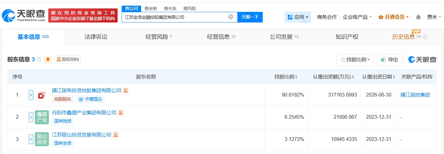 天眼查App显示,近日,江苏金信金融控股集团有限公司发生工商变更,注册资本由约23.3亿人民币增至35亿人民币,增幅约50%。