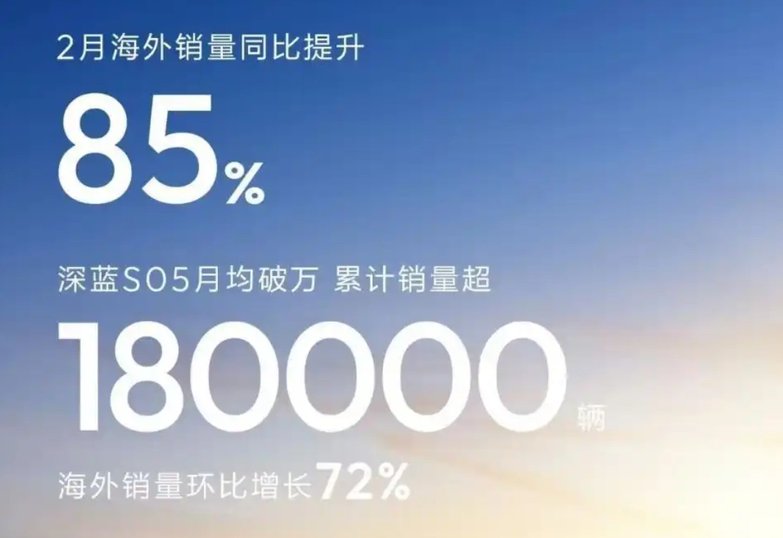 虽然开年以来大家的整体销量都不怎么样,但销量汇报的大多较为及时,唯有深蓝汽车有些不一样。2026年1月份,深蓝汽车交付24,575辆,同比增长34%,环比下滑的情况我们却几乎搜索不到官方信息。2月份,深蓝汽车甚至没有官宣单月整体销量,而是强调2月海外销量同比提升85%。包括长安汽车透露的相关数据中,也只提到了深蓝S05月销过万的成绩。