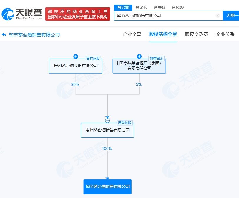 天眼查App显示,近日,毕节茅台酒销售有限公司成立,法定代表人为李强清,注册资本3000万人民币,经营范围包括酒类经营、食品销售、道路货物运输等,由贵州茅台(600519)旗下贵州茅台酒销售有限公司全资持股。