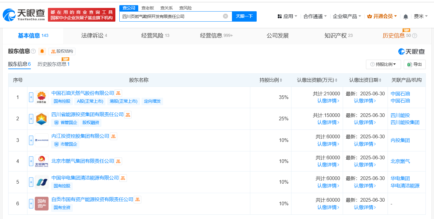 天眼查App显示,近日,四川页岩气勘探开发有限责任公司发生工商变更,注册资本由30亿人民币增至60亿人民币,增幅100%。