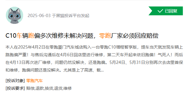从车质网平台上可以看到,仅仅一周的时间,零跑汽车的投诉就达十几条。
