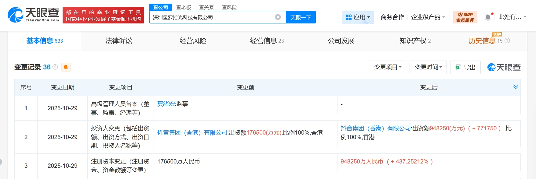 抖音旗下深圳星罗拾光科技公司增资至94.8亿 增幅约437%观点