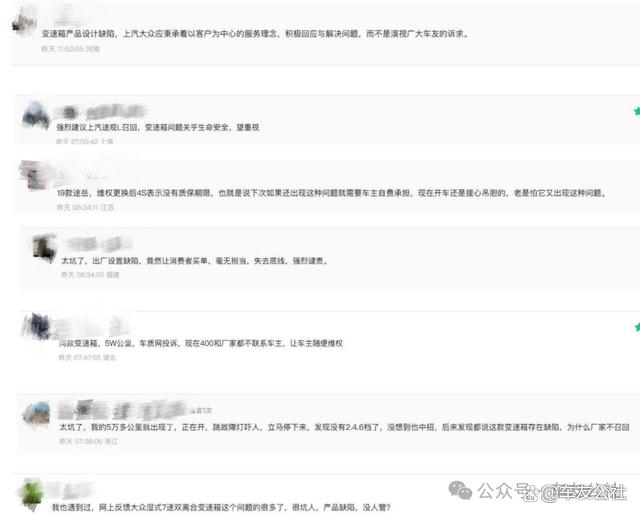 车友公社了解到,张先生的担忧并非个例。多位车主表示,变速箱作为核心部件,其稳定性直接关系到行车安全,而上汽大众目前的处理方式既未彻底解决现有故障,也未对后续风险提供保障,让车主们难以安心用车。