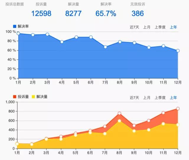 通过查阅聚投诉平台发现,有关玖富的投诉贴高达12598条,解决率为65.7%,但投诉量仍在持续增长,而解决率却在持续下降。