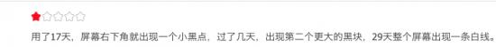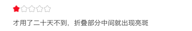 另外,折叠屏幕在使用上是否真的不会受到影响吗?在京东这几款折叠手机的评价中,不乏看到下图这样的状况,屏幕出现白线,或者折叠部分出现亮斑等。
