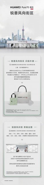 在五一长假到来之时,在上海本地以及前往旅游的朋友,可前往HUAWEI Pura 70系列锐意风向街区,三位艺术家作品、优秀学生创作作品在外滩街区街区中重点展览,并在展览结束后永久保存于华为旗舰店(上海南京东路店)中,供用户进行美学鉴赏。