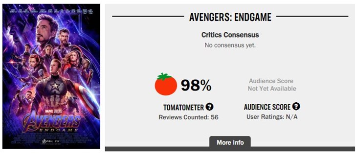 《复仇者联盟4》烂番茄新鲜度98%,豆瓣9.2分快报