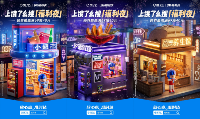 从消费者全品类、全天候的即时消费需求出发,饿了么推出营销IP“24小时·福利夜”。 12月以来,活动围绕小酒馆、小超市、养生馆等冬夜核心场景,推出夜间专属优惠福利、“小夜灯”周边等玩法。据饿了么,活动开启以来,会场人均停留时长较日常会场实现3倍增长,线上逛夜市的心智明显提升,同时更直接拉动滋补保健、水果等重点品类夜间时段订单环比增长超过20%。