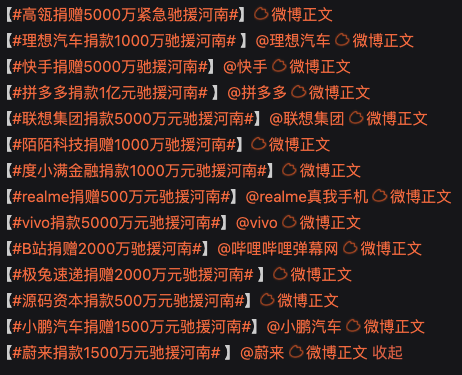 新造车纷纷援助河南!比亚迪捐2000万,蔚来、小鹏各捐1500万、理想捐1000万…快报