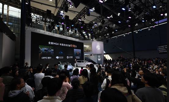 作为MG新百年新能源战略的重要车型,全新MG4在6万至10万元各价格段均展现出强劲竞争力,堪称"10万内最值得买的纯电车"。6万级唯一437km长续航,7万级唯一8155芯片,8万级唯一360°防晒,9万级最强辅助驾驶,10万级最安全纯电体验,全方位领先同级。此外,MG展台还展示了5米高巨型银色MOLI IP装置,打造极具吸引力的潮流打卡空间,让硬核科技展台化身为一个可逛、可玩的沉浸式潮酷街区。