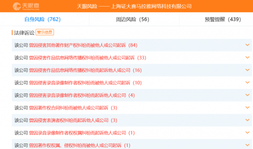 喜马拉雅一直以来也是纠纷不断,产权纠纷问题比较频繁,开庭信息比较多。