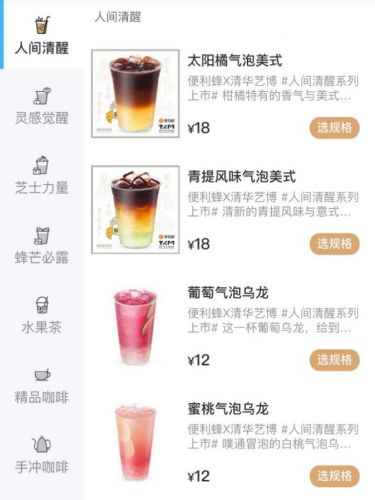我们近期推出了咖啡、茶饮两种不同口味的气泡饮品,便利蜂上新了4款气泡产品,气泡美式咖啡产品。