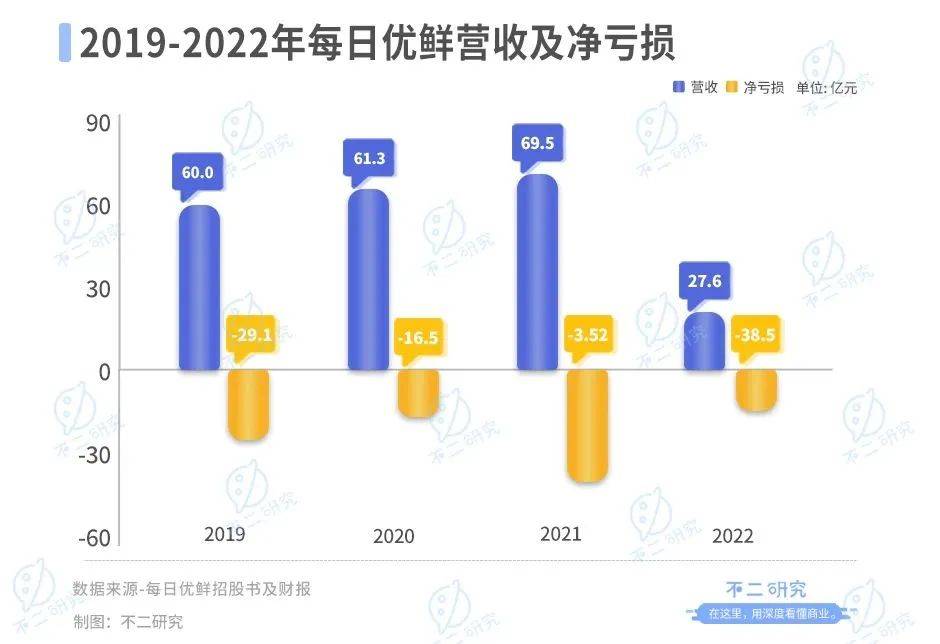 「不二研究」据其年报发现:2022年,每日优鲜的营收为27.6亿元,同比下降60.3%;净亏损为15.23亿元,同比收窄60.44%。