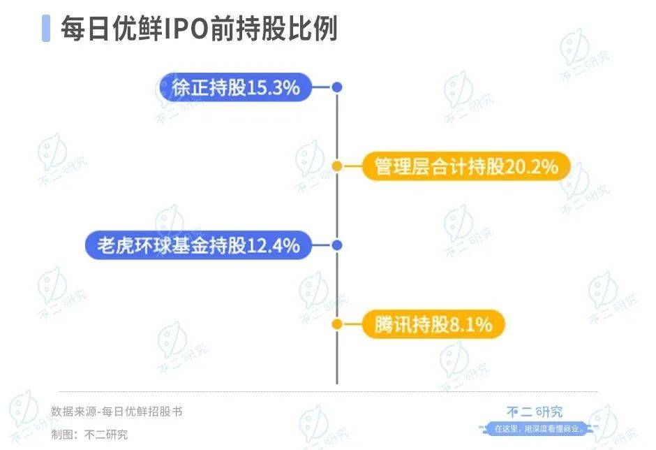 上市后的每日优鲜,似乎并没有迎来其更高光时刻,反而屡陷风波:2022年,撤城收缩、供应商欠款被诉讼、员工大批离职等。到2022年12月,每日优鲜因“不再满足继续在纳斯达克全球市场上市所需的1000万美元股东权益要求”而被退市警告。 「不二研究」发现,2019-2022年,每日优鲜累计亏损99.31亿元;且履约费用高企,其在上市后并未改变亏损换增长的策略。 显然,前置仓模式并未给出令资本市场满意的答卷;每日优鲜同时抛出B端新故事,但不可避免地存在风险和挑战。 当生鲜电商赛道格局动荡,在前置仓烧钱消耗战之后,资本市场还会相信每日优鲜的新故事吗? 每日优鲜的掌舵者徐正被称为“天才少年”,15岁时因获得全国奥数比赛第一名而被保送至中国科技大学数学系。 此后,徐正在联想集团工作十余年,28岁成为联想集团最年轻高管,并于2014年创立每日优鲜。 据招股书显示:其在2015年首创前置仓模式,解决生鲜配送“最后一公里”难题。 创业之初,每日优鲜即获得来自元璟资本、光信资本、展博创投的500万美元天使轮融资;此后,其几乎保持每年一到两轮的融资节奏,在IPO前共获得11轮融资,总融资规模超100亿元。 据招股书显示,徐正持股15.3%、管理层合计持股20.2%;老虎环球基金持股12.4%;腾讯持股8.1%。