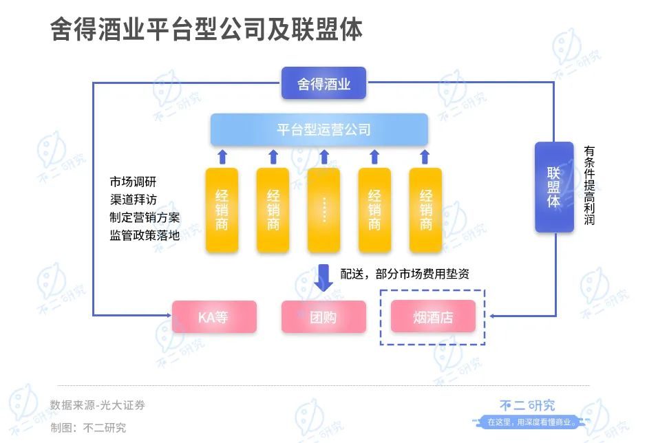 2012年前,舍得酒业与大多川酒品牌一般,采用传统大商制进行全国化拓展。2013-2015年,为应对“三公消费”限制而开始推广平台型渠道商。