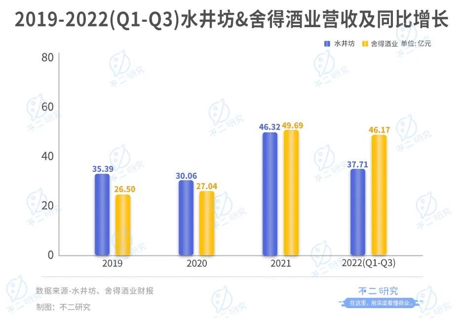 「不二研究」认为,水井坊在受疫情大幅影响后快速修复业绩并取得突破,舍得酒业在复星集团的带领下浴火重生,重新超越水井坊,但彼此差距并不大。