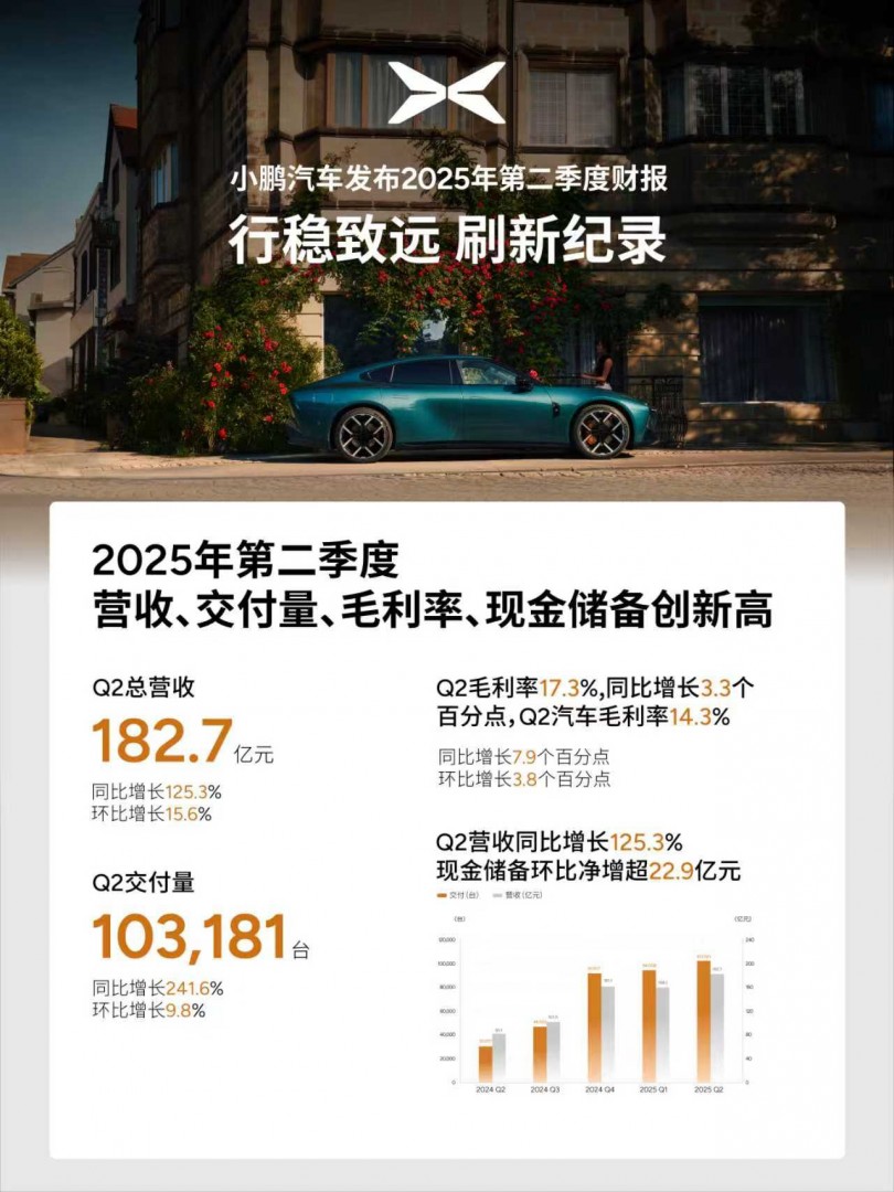 【TechWeb】8月19日消息,今日,小鹏汽车公布了 2025 年第二季度未经审计财务业绩,其营收、交付量、毛利率现金储备均创历史新高。