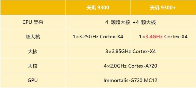 据知名数码博主@数码闲聊站 最新发布的信息显示,与此前曝光的消息基本一致,蓝厂将在5月份推出vivo X100 Ultra和vivo X100S两款旗舰,其中vivo X100S将全球首发搭载联发科天玑9300+移动平台,被誉为“天玑之王”。结合此前相关爆料,天玑9300+是史上最强大的天玑旗舰。其CPU是1×3.4GHz Cortex-X4+3×2.85GHz Cortex-X4+4×2.0GHz A720,GPU依旧是Immortalis-G720 MC12,X4超大核主频进一步提升,GPU核心的频率也有望提升。