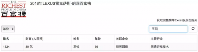最近几年,王悦的身家不断缩水,2018年只剩下30亿元。