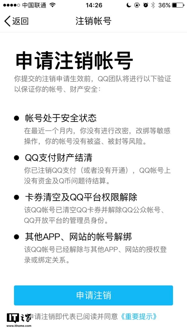 需要提醒的是,QQ注销帐号后不可恢复,请慎重。