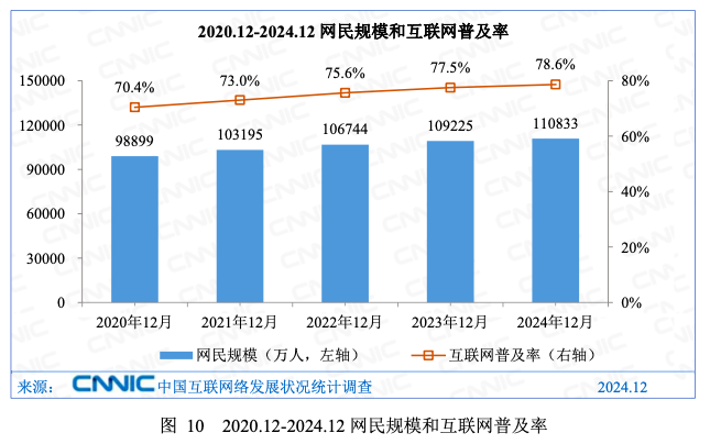 CNNIC:2024年中国网民规模达11.08亿人