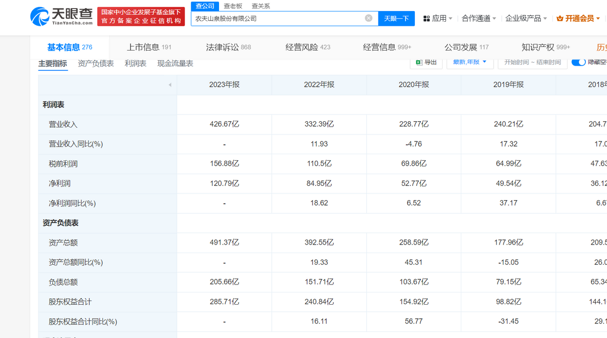 天眼查APP显示:今年上半年,农夫山泉“包装饮用水产品”板块实现营收85.31亿元,较去年同期大幅下滑18.3%,这是个非常罕见的表现。
