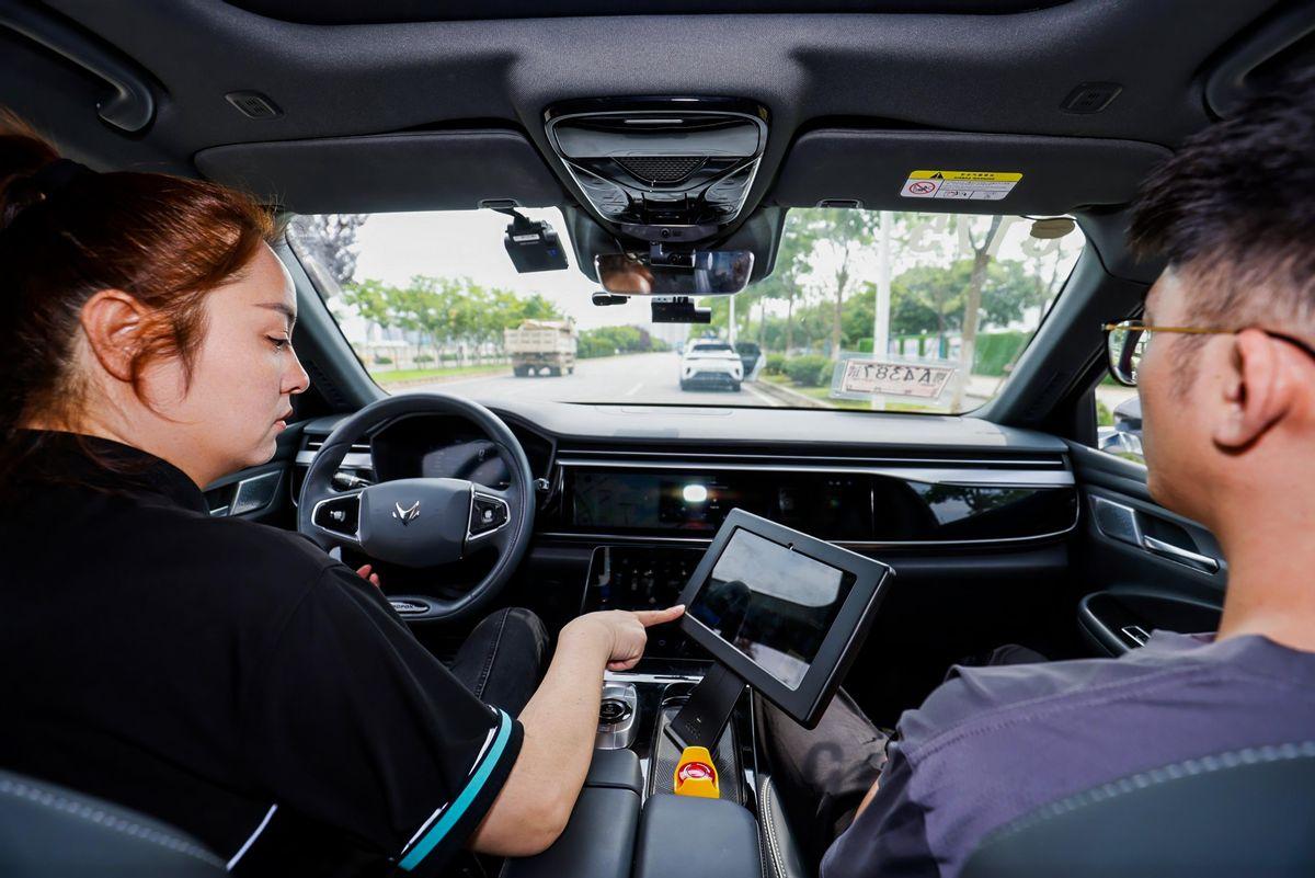 在工作时,李成坐在主驾,不碰方向盘,也不需要操作车机系统,只需要在极少数情况下接管车辆,负责车辆以及交通参与者的安全。