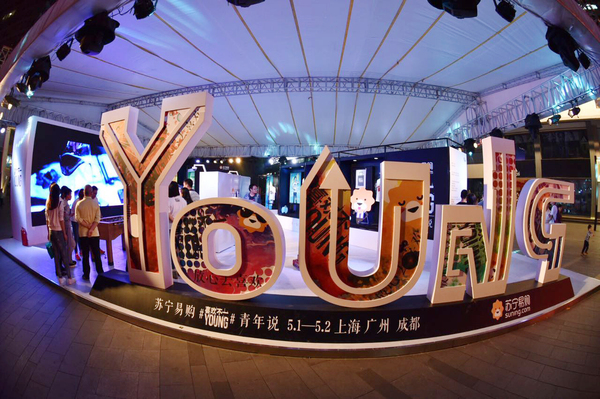 基于青春宣言战略,苏宁在4月29日,苏宁易购发布“网红”召集令,发布了一组T恤悬疑海报,网友根据提示猜测定制T恤的穿着者,在微博上引起围观和热议;4月30日,全国多地LED电子大屏播放“青春苏宁我来Show”的巨幅广告,“音雄”吴莫愁、“国脚”吴曦、“人皇”SKY等纷纷为活动站台;5月1日—2日,为期两天的“喜欢不一YOUNG青年说”概念展览在上海、成都、广州三地落地,吸引了众多消费者前来参与,合影留念。围绕线上+线下+社交圈展开,苏宁易购发起的这场名为“54青年品牌T计划”在全渠道、全场景掀起了一场引起年轻一代,敢于突破自我、彰显个性的狂欢潮流。