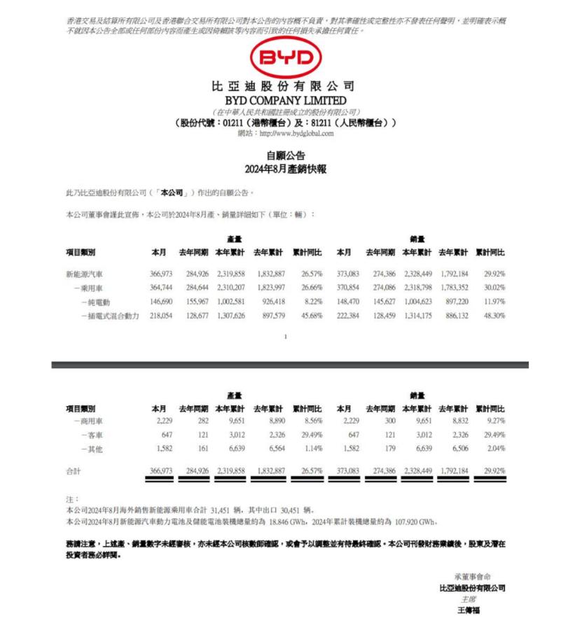 近日,比亚迪交出了上半年的成绩单,营收为3011.3 亿元,同比增长 15.8%;净利润为136.3 亿元,同比增长 24.4%;汽车、汽车相关产品及其他产品业务的毛利率为23.94%,同比增长3.27个百分点。