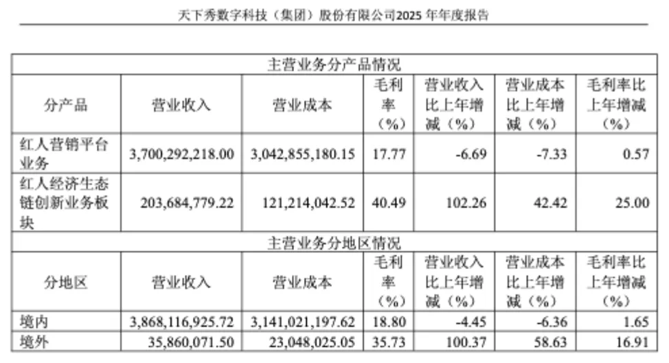 2026年4月9日晚间,被誉为“A股红人经济第一股”的天下秀数字科技(集团)股份有限公司(以下简称“天下秀”,600556.SH)发布了2025年年度财务报告。