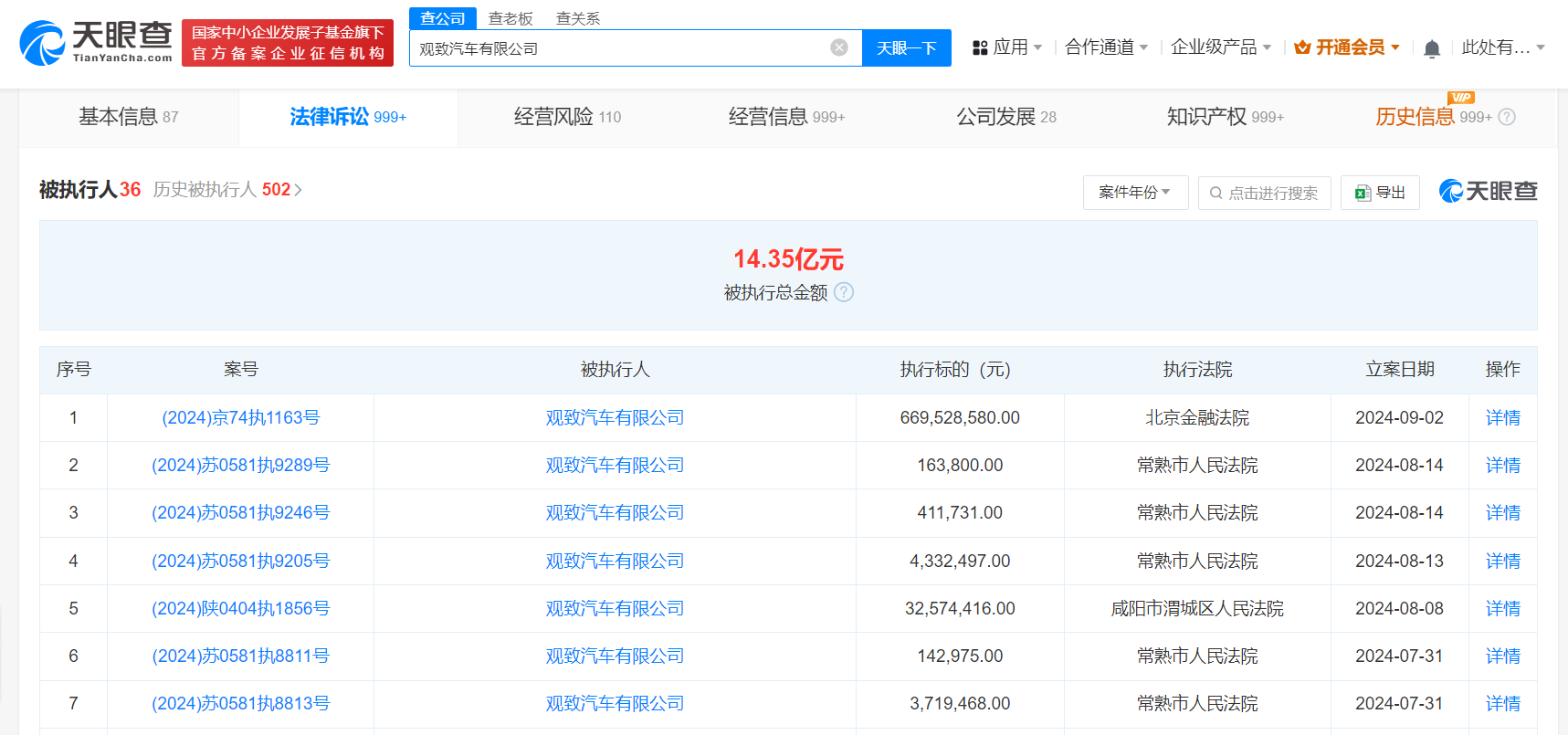 天眼查法律诉讼信息显示,近日,观致汽车有限公司、深圳市宝能投资集团有限公司、芜湖奇瑞汽车投资有限公司、杭州诚茂投资有限公司等新增一条被执行人信息,执行标的6.69亿余元,执行法院为北京金融法院。