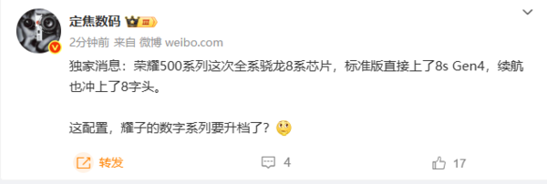 荣耀500全系搭载骁龙8系平台:电池容量超8000mAh快讯
