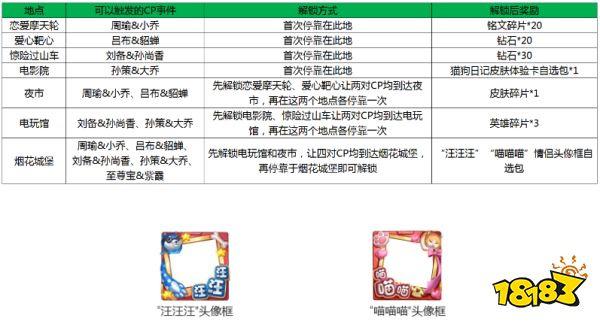 掷骰子,游乐园,解锁地标建筑即可获得奖励并查看峡谷情侣海报图集。更有两款全新情侣头像框任你选择。