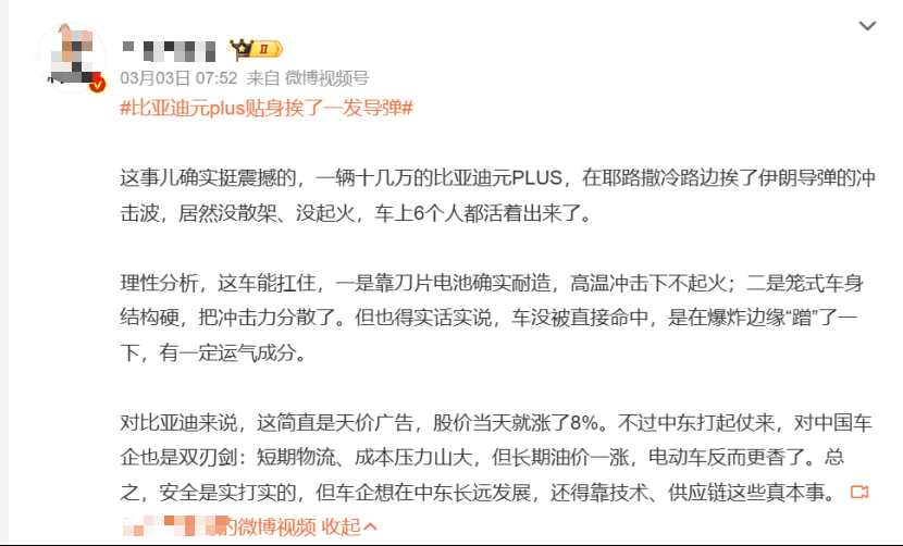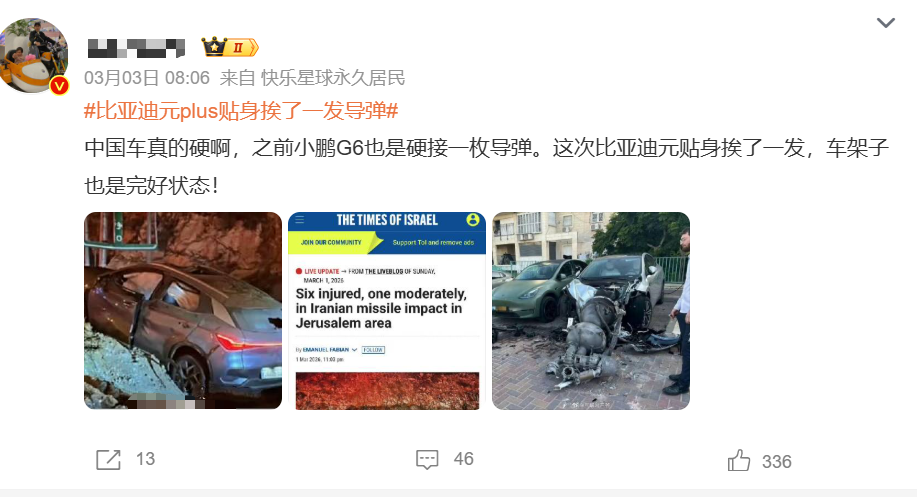 “比亚迪硬扛伊朗导弹”的热议,本质是公众的自我狂欢。