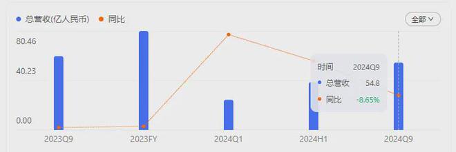 按单季度数据看,第三季度营业总收入15.94亿元,同比下降20.81%,第三季度归母净利润-450.03万元,同比下降325.2%。