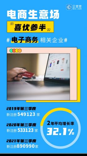 电商相关企业的注册量为89.1万家,2021年前三季度共注册相关企业13.3万家,企查查数据研究院推出《2021电商行业数据报告。