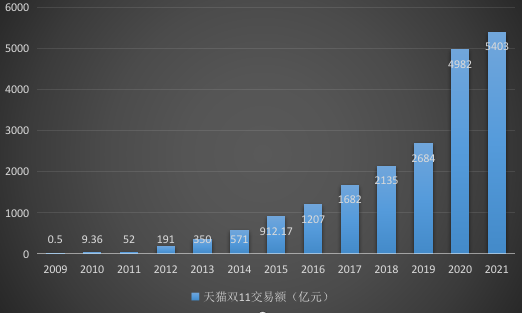 根据数据统计,2009年—2020年双11当天交易额分别是:0.5亿元、9.36亿元、52亿元、191亿元、350亿元、571亿元、912.17亿元、1207亿元、1682亿元、2135亿元、2684亿元以及4982亿元。有意思的是,张勇曾经透露称,别说2017年的1682亿的交易额,就连当初第一年0.5亿的交易额都超乎我们所有人的意料。