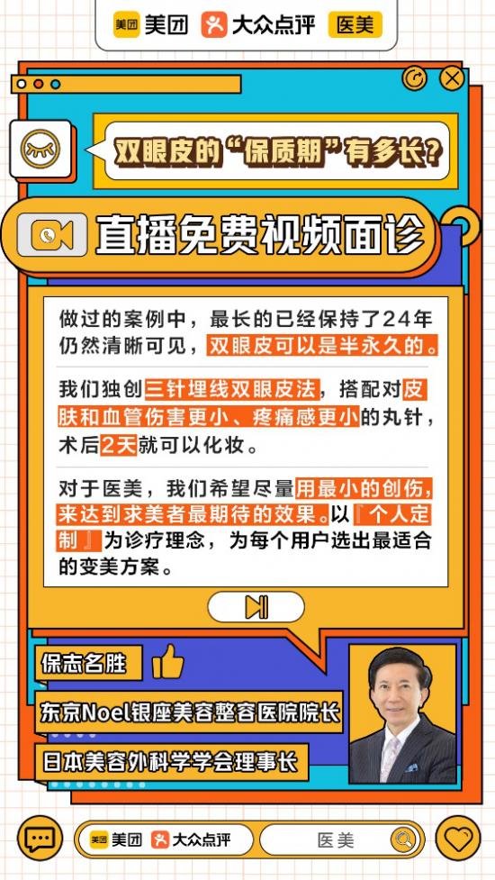 美团医美618期间,包括公立三甲同济大学上海东方医院江华教授及其团队、北京八大处整形医院郭鑫副教授,以及日本东京Noel银座美容整容医院院长、日本美容外科学学会理事长保志名胜等海内外知名医美医生在线直播和免费视频面诊。