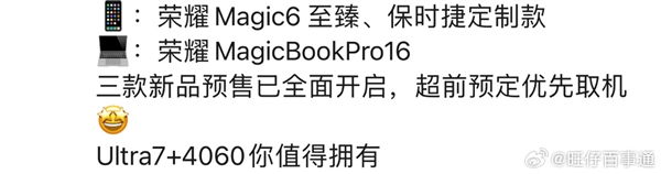 【Techweb】今年初,荣耀在发布会上推出了新一代旗舰荣耀Magic6系列,其中包含Magic6和Magic6 Pro两款机型,凭借领创性的“科技魔法”,受到了消费者和市场的广泛青睐。而除了已上市的两款机型外,该系列还将推出保时捷设计版本,截至目前已经吸引了不少用户的关注,而此前已经证件齐全只待上市。现在有最新消息,近日有数码博主透露,该机已在线下门店开启预订,3月份正式发布。