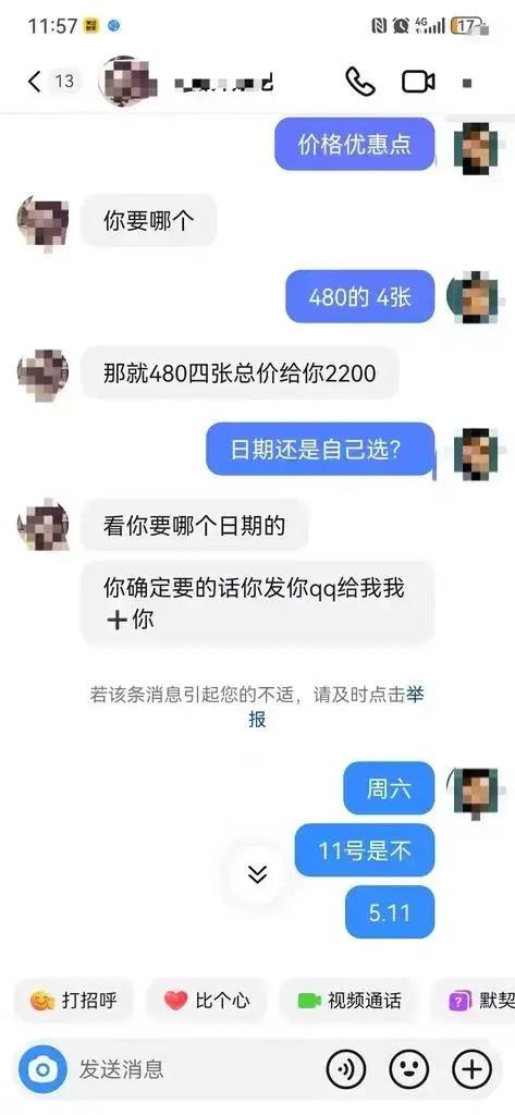 用户小a(化名),今年3月收到陌生人私信,问其是否需要张学友演唱会门票,表示自己是售票网站内部人员,加价即可买到。随后,对方要求用户加社交好友详聊,并通过语音教用户具体操作。“我按他的要求一步步登录售票网站,直到跟客服对话、付款。付款的二维码是个人账号,那个所谓的客服说没问题,我就没多想把两千多块钱转出去了。”用户表示,付款后自己一直没收到门票信息,再次询问才发现早被对方拉黑,此时才意识到,自己按照语音指示登录的网站、客服对话窗口都是假冒的。