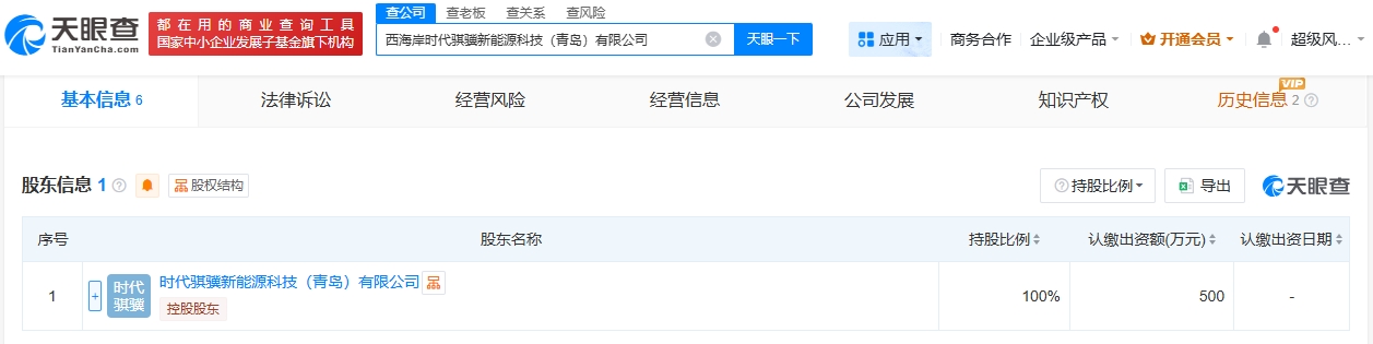 天眼查工商信息显示,近日,西海岸时代骐骥新能源科技(青岛)有限公司成立,法定代表人为李军亮,注册资本500万人民币,经营范围包括新兴能源技术研发、新能源汽车换电设施销售、在线能源计量技术研发、新能源汽车整车销售等。