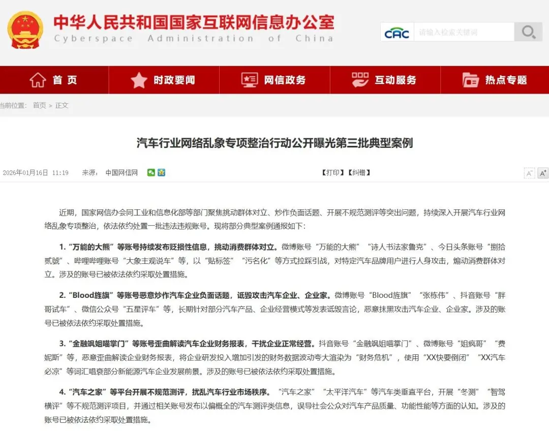 近期,据新华社、网信中国等权威媒体和官方发布显示,国家网信办会同工业和信息化部等部门聚焦突出问题,持续深入开展汽车行业网络乱象专项整治,依法依约处置一批违法违规,包括“汽车之家”、“太平洋汽车”等汽车类垂直平台。