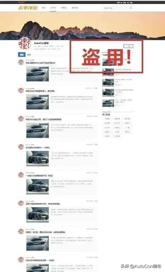 特别需要指出的是,林肯汽车品牌资方在网络商业活动中,林肯品牌及其利益共同体涉嫌“盗用《AutoCon御车》名义”,为林肯品牌独家实施大量、高频、商业性、涉嫌虚假的公关宣传,同时通过“水军”矩阵账号大量发布相同内容,涉嫌操纵舆情。在日趋完善的网络法治环境下,林肯汽车品牌的这种违法、违规行为“以盗用他人名义”的形式出现,性质极其恶劣,手段极其卑鄙!