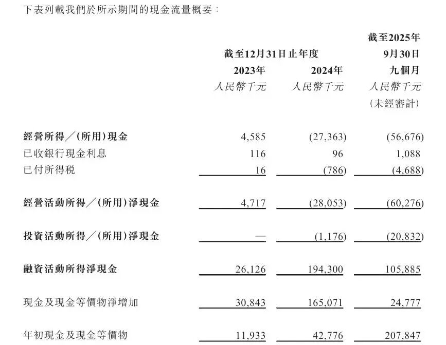 众安信科财务问题的另一个直观体现,是账面净利润持续增长与经营现金流持续净流出的严重背离。招股书显示,2024年及2025年前三季度,公司经营活动产生的净现金流量分别为-2805.3万元、-6027.6万元,连续出现大额净流出,与同期净利润3323.1万元、3165.5万元形成鲜明反差。这意味着公司的主营业务不仅没有带来现金回报,反而在不断“失血”,导致盈利停留在账面,无法转化为真金白银。