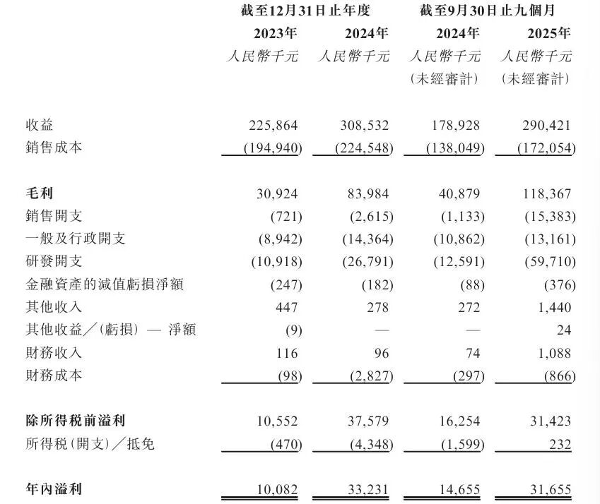 从账面数据来看,众安信科2023年至2025年前三季度的业绩呈高速增长态势。招股书显示,公司2023年实现营业收入2.26亿元,净利润1008.2万元;2024年营收同比增长36.6%至3.09亿元,净利润同比增幅高达229.6%至3323.1万元;2025年前三季度,营收已达2.9亿元,接近2024年全年水平,净利润则同比增长116%至3165.5万元。
