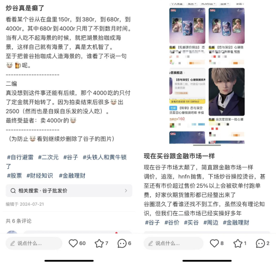 二次元爱好者的谷穗(化名)表示,自己是学生党没什么钱,“吃谷”确实有负担,也有想过退出谷圈,但又会忍不住问自己,难道不是因为爱才买的谷吗?
