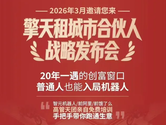 就在这种情绪高点中,主打机器人租赁的平台开始密集宣传,先是元旦期间的1元闪租十城联动、融资消息发布,再到春节的城市合伙人战略发布会,再叠加“背靠智元机器人”“互联网高管团队”的背景标签,一套完整的创业故事迅速搭建完成。